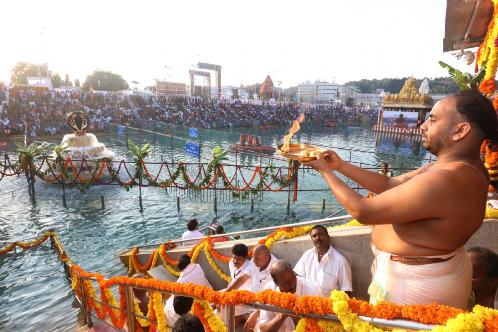 Srivari Salakatla Brahmotsavam came to crescendo and climaxed on the Ninth day with the Chakrasnanam ritual performed in the presence of thousands of devotees at the Swami Pushkarini near the Tirumala Temple.