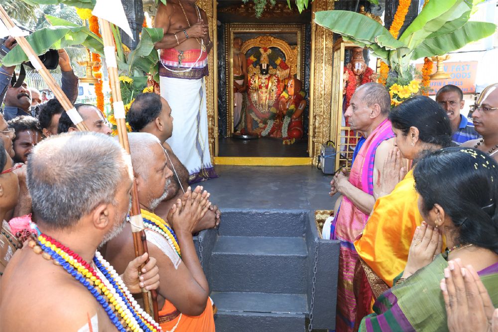 Ramanuja Sanchara Radha Yatra is off to a ceremonious start in Tirumala on Tuesday and the Governor of AP and TS, ESL Narasimhan took part in the special puja that was performed at Bedi Anjaneya Swamy temple.