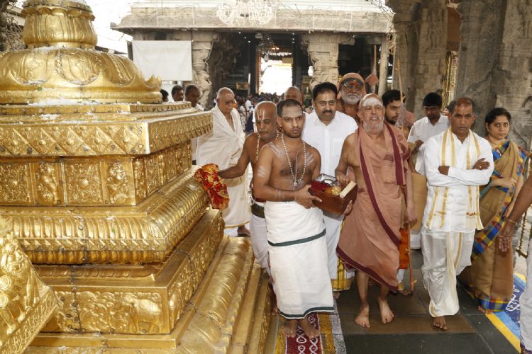 The pontiff of Kanchi Kamakoti Sri Sri Sri Jayendra Saraswati was accorded warm welcome at the temple entrance by TTD EO Sri D Sambasiva Rao and accompanied for darshan of Lord Venkateswara on 3rd July 2016.