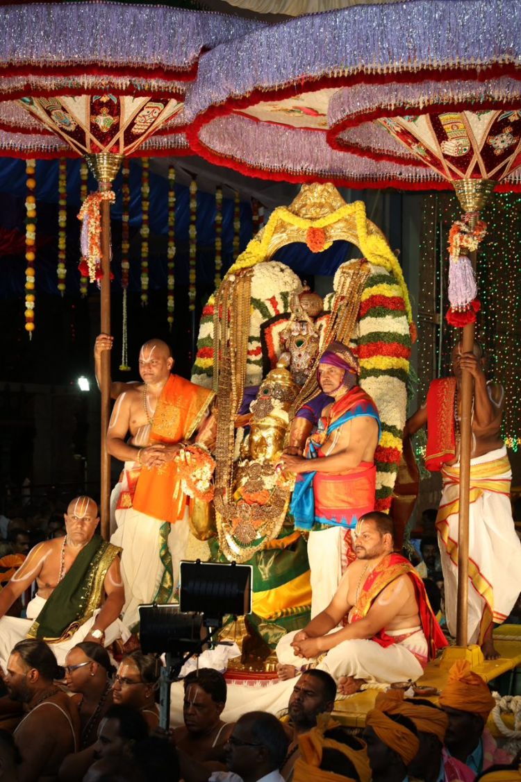 On the fifth day evening, on Friday, as a part of the ongoing Srivari Sallakatla Brahmotsavams, Lord took celestial ride on His most favourite vehicle, Garuda Vahanam, in all His splendour and majesty.