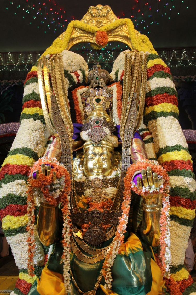 On the fifth day evening, on Friday, as a part of the ongoing Srivari Sallakatla Brahmotsavams, Lord took celestial ride on His most favourite vehicle, Garuda Vahanam, in all His splendour and majesty.