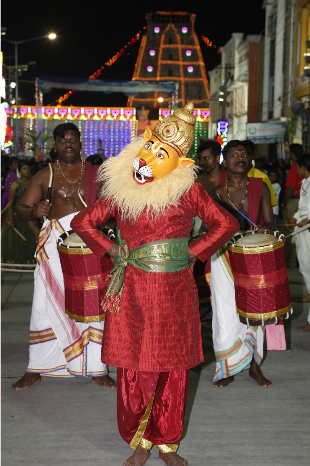 By taking celestial ride on Simha Vahanam as a part of the ongoing Brahmotsavams in Tiruchanoor, the Goddess in the form of Veera Lakshmi blessed Her devotees on Monday.