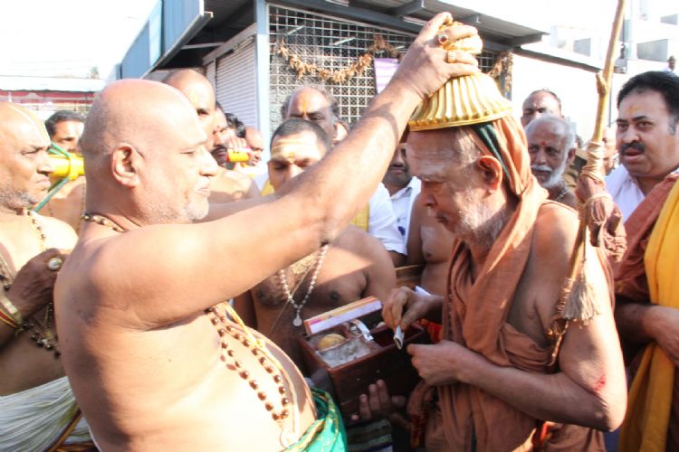 Kanchi Mutt Pontiff H.H.Sri Sri Jayendra Saraswathi, Junior Pontiff of Kanchi Mutt HH Sri Vijayendra Swamiji had the blessings of Lord Venkateswara at Tirumala on Friday morning. TTD JEO Sri KS Sreenivasa Raju welcomed them with Temple honors. He rendered the Vinjamara Seva to Lord Balaji.