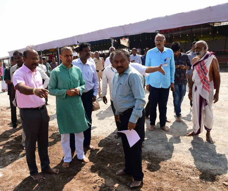 As the prestigious event of Bhookarshana for the new temple to come up at the capital city of AP id on January 31, TTD EO Sri Anil Kumar Singhal inspected the arrangements along with JEO Sri P Bhaskar and CVSO Sri Gopinath Jetti.