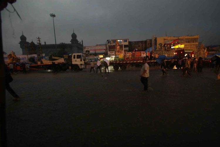 A massive Ganesh idol leading the procession of Ganesh Nimajjanam which began from Charminar to Husain Sager on Wednesday.