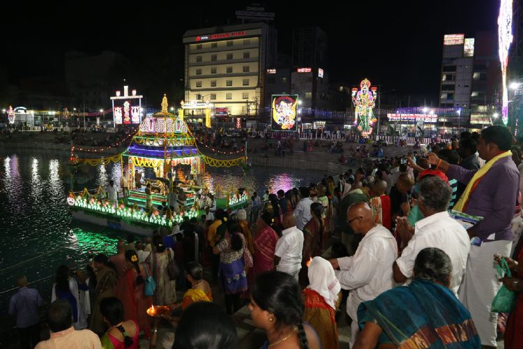 The five day colourful and holy annual teppotsavam of Sri Govindaraja swamy Temple kicked off grandly this evening when the utsava idols of Sri Kodandarama Swami and his consorts were taken on a colourful flat ride.