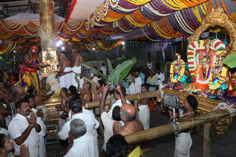 The curtains came down for annual brahmotsavams in Sri Kalyana Venkateswara Swamy temple on Monday evening with ceremonial Dhwajavarohanam. The Garuda flag which hoisted on first day of brahmotsavams was lowered during this ritual which marked the successful conclusion of the mega annual festival.