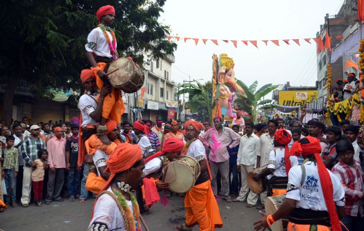 A massive Ganesh idol leading the procession of Ganesh Nimajjanam which began from Charminar to Husain Sager on Wednesday.
