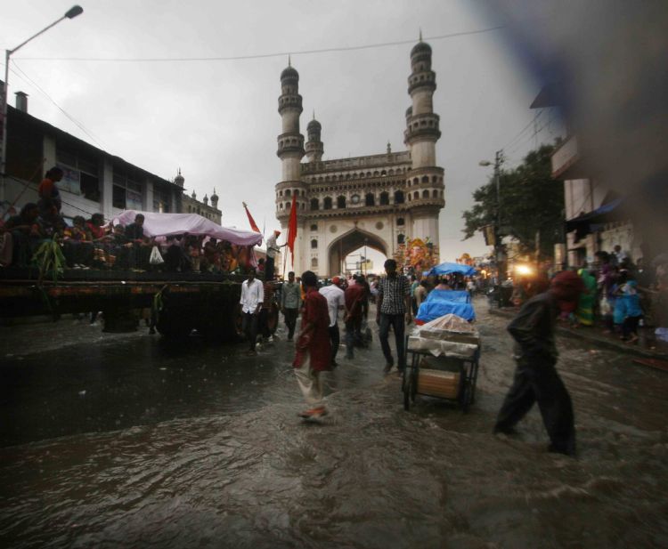 A massive Ganesh idol leading the procession of Ganesh Nimajjanam which began from Charminar to Husain Sager on Wednesday.