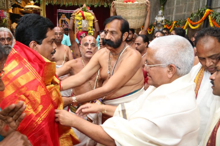 The most colourful festival, Pushpayagam has been performed with several tonnes of various kinds of blossoms in Srivari Temple on Sunday.