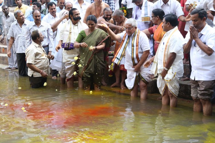 TTD Chairman Sri K.Bapi Raju and TTD EO Sri MG Gopal attended the Ganga Puja observed by TTD Water Works department in Kapilatheertham Temple on Friday evening, November 29th, 2013. This puja is performed every year to appease Goddess Ganga.
