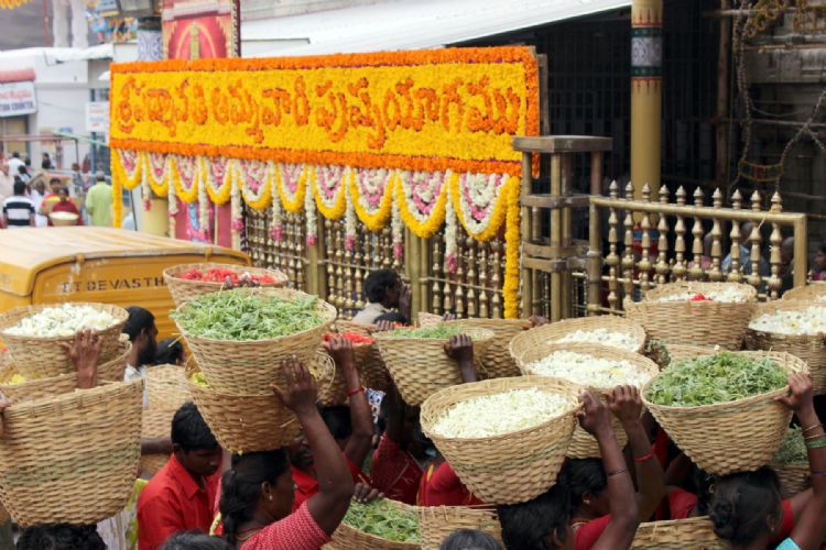 After the completion of the nine-day religious ceremony of Karthika Brahmotsavams in the temple of Tiruchanoor, the Goddess Padmavathi Devi was rendered a colourful floral bath 'Pushpa Yagam' on Sunday.