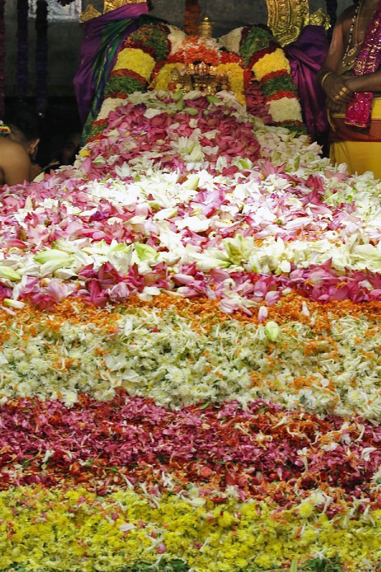 After the completion of the nine-day religious ceremony of Karthika Brahmotsavams in the temple of Tiruchanoor, the Goddess Padmavathi Devi was rendered a colourful floral bath 'Pushpa Yagam' on Sunday.