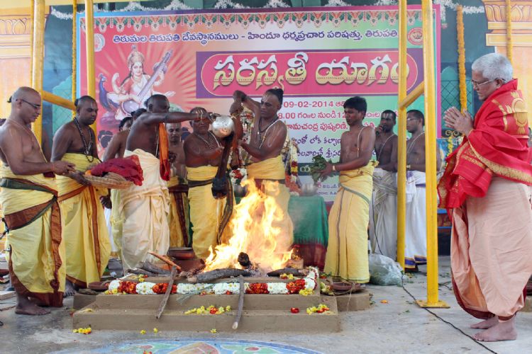 To bestow the blessings of Goddess Sarawathi, the deity of wisdom on the students, the Hindu Dharma Prachara Parishad wing of TTD has organised Saraswathi Yagam in Tirupati on Sunday, Feb 9th