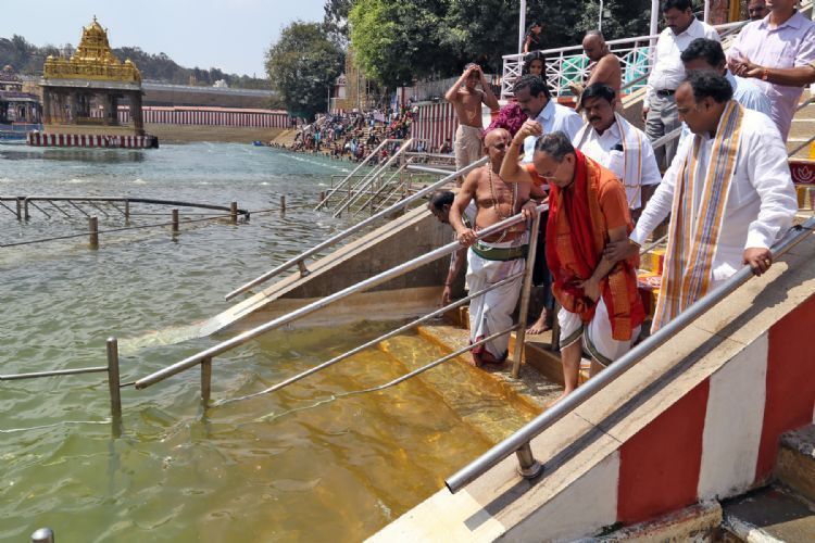 The Chief Election Commissioner of India Sri V.S.Sampath had laghu darshan of Lord Venkateswara like any other common pilgrim where he offered prayers to presiding deity inside the temple on Saturday morning.