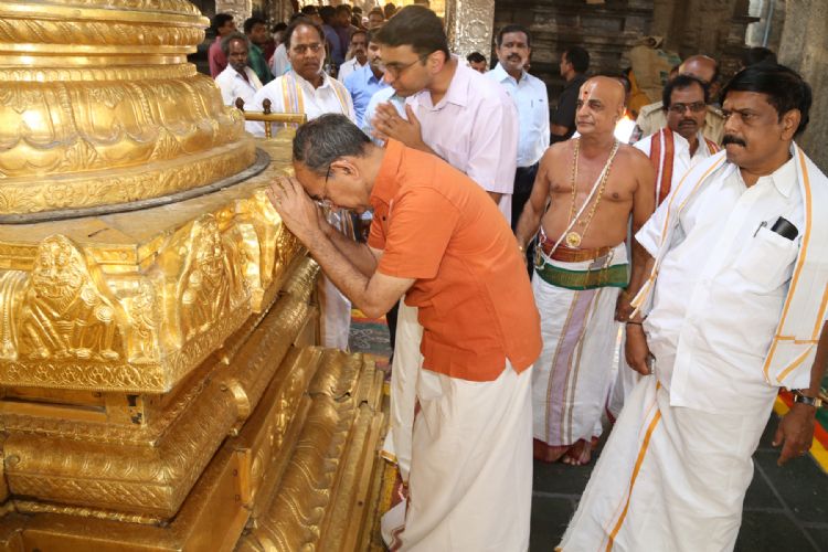 The Chief Election Commissioner of India Sri V.S.Sampath had laghu darshan of Lord Venkateswara like any other common pilgrim where he offered prayers to presiding deity inside the temple on Saturday morning.
