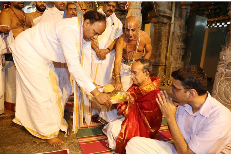 The Chief Election Commissioner of India Sri V.S.Sampath had laghu darshan of Lord Venkateswara like any other common pilgrim where he offered prayers to presiding deity inside the temple on Saturday morning.