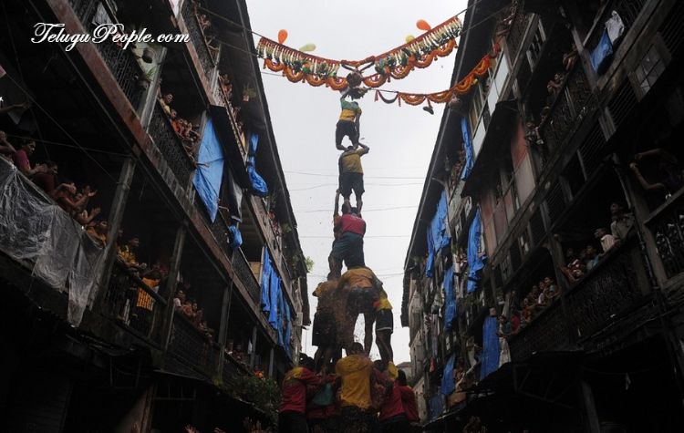 Indian Hindu devotees throughout the world celebrate Janmashtami, which marks the birth of Hindu God Lord Krishna with enormous zeal and enthusiasm. Children and adults dress as the Hindu God Krishna and his consort Radha in bright, elaborate costumes and jewelry. Human pyramids form to break the 'dahi-handi' or curd pot. The large earthenware pot is filled with milk, curds, butter, honey and fruits and is suspended from a height of 20 - 40 feet.