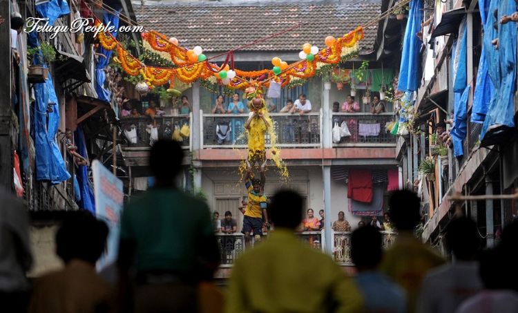 Indian Hindu devotees throughout the world celebrate Janmashtami, which marks the birth of Hindu God Lord Krishna with enormous zeal and enthusiasm. Children and adults dress as the Hindu God Krishna and his consort Radha in bright, elaborate costumes and jewelry. Human pyramids form to break the 'dahi-handi' or curd pot. The large earthenware pot is filled with milk, curds, butter, honey and fruits and is suspended from a height of 20 - 40 feet.