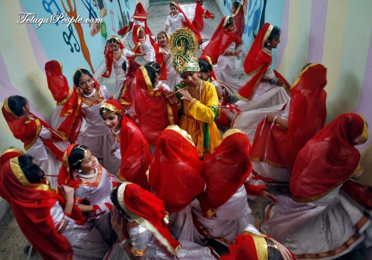 Indian Hindu devotees throughout the world celebrate Janmashtami, which marks the birth of Hindu God Lord Krishna with enormous zeal and enthusiasm. Children and adults dress as the Hindu God Krishna and his consort Radha in bright, elaborate costumes and jewelry. Human pyramids form to break the 'dahi-handi' or curd pot. The large earthenware pot is filled with milk, curds, butter, honey and fruits and is suspended from a height of 20 - 40 feet.