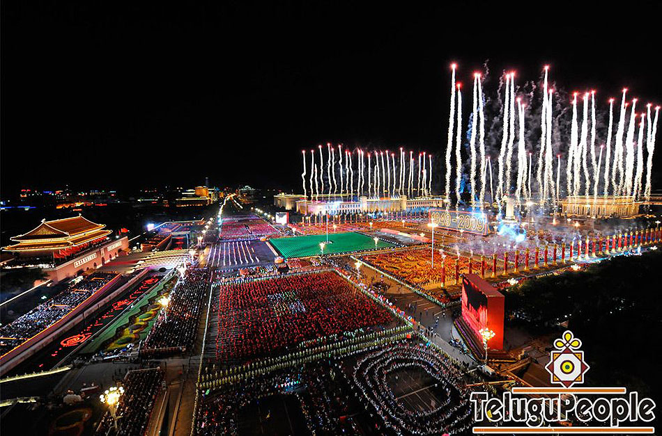 Fireworks explode over Tiananmen Square during an evening performance to mark China's 60th anniversary, in Beijing October 1, 2009.