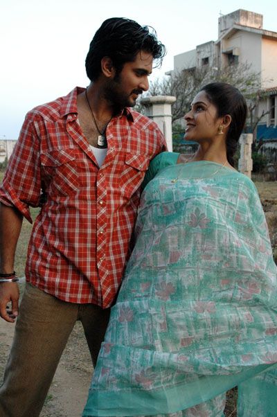 Rishi and Madhumita in a working still of a telugu movie Gharjana, produced by G.Blakrishna on Lakshmi Talkies Banner and directed by Udayabhanu. The films shooting is in progress at Hyderabad.