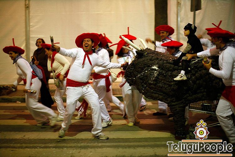 Revellers dressed up as San Fermin Festival bull runners celebrate the New Year in Coin, near the southern Spanish town of Malaga, early January 1, 2010. (REUTERS/Jon Nazca) #