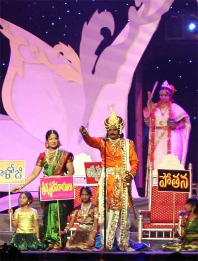 Telugu Super Star Bala Krishna performing as Srikrishna Devaraya in a stage show called Bhuvana Vijayam along with vetaran actress Prabhs TANA Conference in Washington DC on July 6th-07.