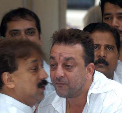 Actor Sanjay Dutt coming out of his residence at Pali Hill, Bandra, to appear at TADA court on Tuesday. Designated TADA Court sentenced him to 6 years rigorous imprisonment convicted under the Arms Act for possessing an AK-56 rifle and a 9-mm pistol for his involvement in the 1993 Mumbai serial bomb blasts case.