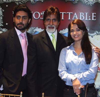 Abhishek Bacchan, Amitabh and Aishwarya at a press conference about their upcoming World tour The Unforgettable in NY on Aug 18th-07.