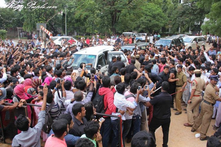 Bollywood actors Ajaya Devgan and kareena kapoor arrived Hyderabad for promotion of New Move singham Returns to promotion campaign at sultan –ul- uloom engineering college Banjara hills