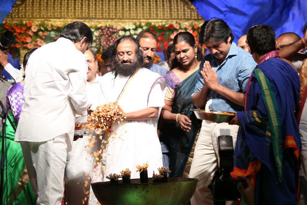 Actor and founder of Janasena party Pawan Kalyan attended as chief guest for koti deepothsavam along with pandit Ravi Shankar and Chaganti Koteswara Rao in Hyderabad.