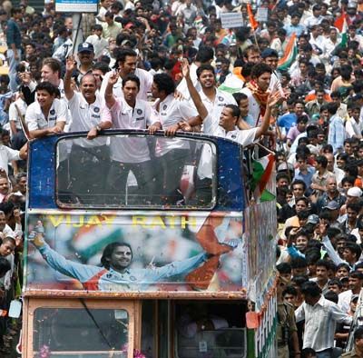 procession after the team s arrival in Mumbai, September 26,2007. India won the inaugural ICC World Twenty20