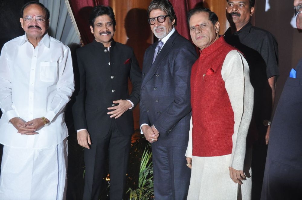 Amitabh Bachchan was presented with the prestigious ANR National award for his decades of dedication to Indian cinema at a glittering ceremony held at the Annapurna Studios in Hyderabad. Chief Minister of Telangana K. Chandrasekhar Rao and Parliamentary Affairs Minister M Venkaiah Naidu graced the occasion and presented the award to Mr.Bachchan. All the top celebrities from tollywood were present at the award ceremony.