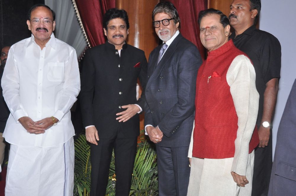 Amitabh Bachchan was presented with the prestigious ANR National award for his decades of dedication to Indian cinema at a glittering ceremony held at the Annapurna Studios in Hyderabad. Chief Minister of Telangana K. Chandrasekhar Rao and Parliamentary Affairs Minister M Venkaiah Naidu graced the occasion and presented the award to Mr.Bachchan. All the top celebrities from tollywood were present at the award ceremony.