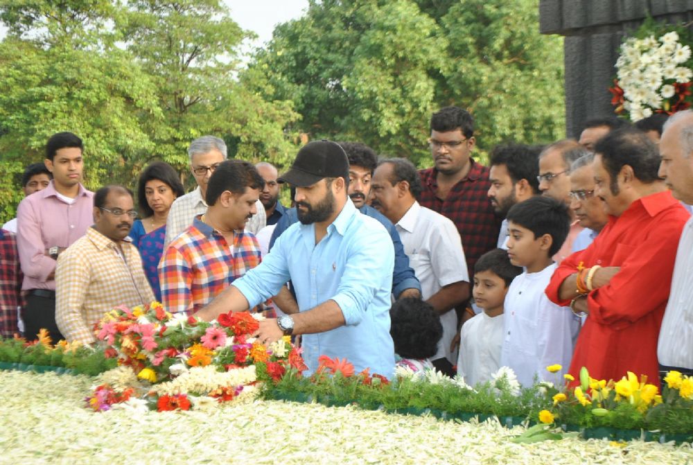 Nandamuri family members including Nara Chandrababu Naidu, Bala Krishna, Hari Krishna, jr.Ntr, Kalyan Ram and other paid tributes to the TDP founder and former Chief Minister Nandamuri Taraka Ramarao on account of his 92nd Birth anniversary at NTR gardens, Hyderabad.
