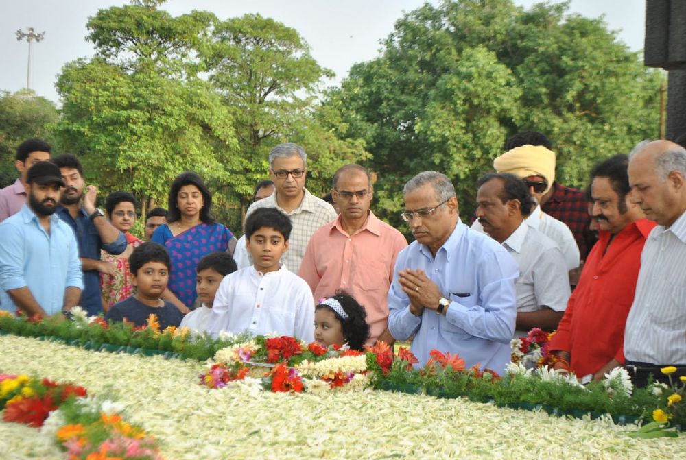 Nandamuri family members including Nara Chandrababu Naidu, Bala Krishna, Hari Krishna, jr.Ntr, Kalyan Ram and other paid tributes to the TDP founder and former Chief Minister Nandamuri Taraka Ramarao on account of his 92nd Birth anniversary at NTR gardens, Hyderabad.