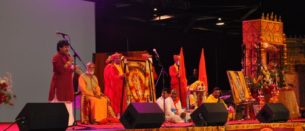 NATS 4th Telugu Sambaralu on day two started with the devotional activities in Los Angeles. Actor and MLA Nandamuri Balakrishna, Justice Noothi Ramamohan Rao, Ambika Krishna, Errabelli Dayakararao, actors Ali, Sai Kumar, Kota Sankararao and others participated in Sai baba Palanquin seva.