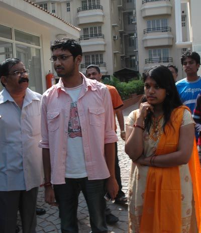 The runaway couple Shirish and Srija who have returned home after their stay in Delhi take time to strike a pose for the media at Krish Garden, Begumpet in Hyderabad.