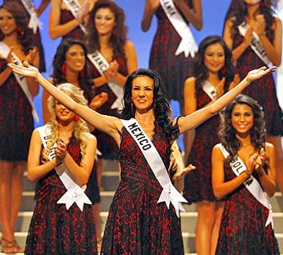 Miss Mexico Rosa Maria Ojeda Cuen stands in front of the other contestants at the