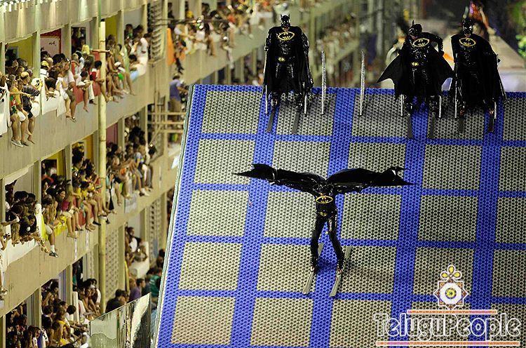 Skiing Batmen ride aboard a Unidos da Tijuca samba school float during the Carnival parade in Rio de Janeiro's Sambadrome, February 14, 2010. (REUTERS/Ricardo Moraes) #