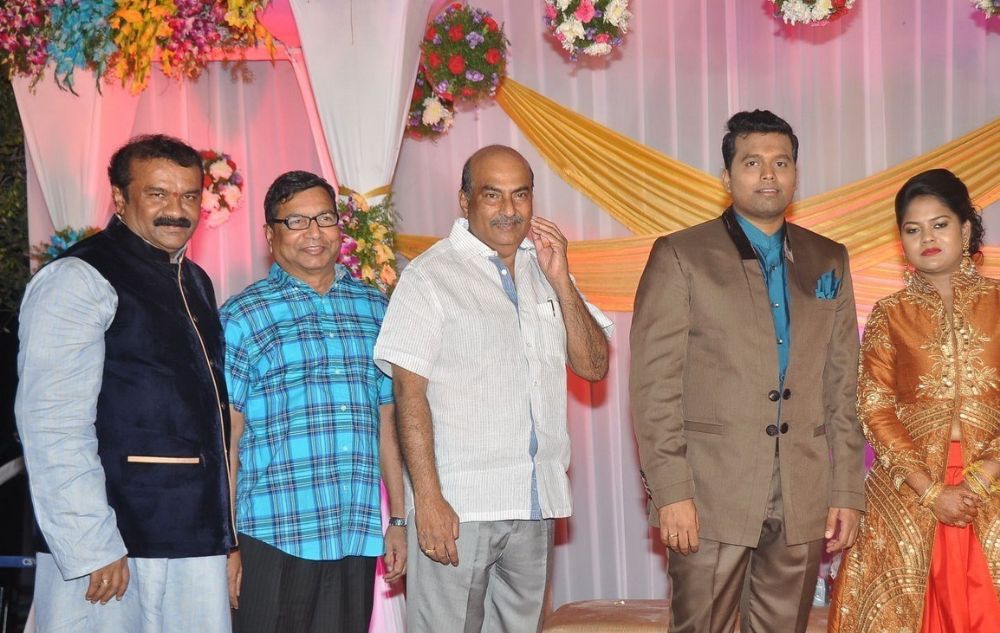 Eminent political and film personalities including Telangana CM Chandra Sekhara Rao, Etala Rajendar, Danam Nagendar, Chiranjeevi, Nagarjuna, Trivikram, Brahmanandam and many other celebrities attended Talasani Srinivas Yadav's daughter Swetha's wedding reception.