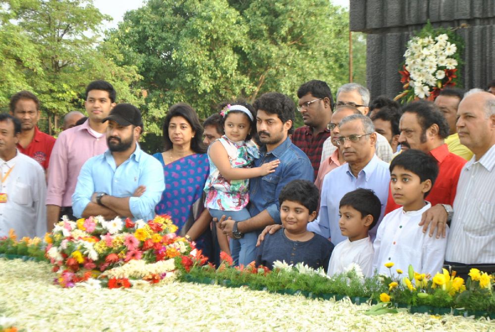 Nandamuri family members including Nara Chandrababu Naidu, Bala Krishna, Hari Krishna, jr.Ntr, Kalyan Ram and other paid tributes to the TDP founder and former Chief Minister Nandamuri Taraka Ramarao on account of his 92nd Birth anniversary at NTR gardens, Hyderabad.