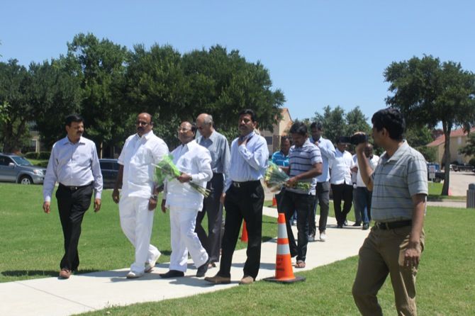 Andhra Pradesh Assembly speaker Dr.Kodela Sivaprasada Rao visited Gandhi memorial in Dallas, US. He appreciated the efforts of Dr. Prasad Thotakura, Chairman of Mahatma Gandhi Memorial and other members in setting up the memorial for the Father of the Nation. Later he attended the meet and greet session with the NRI Telugu community.