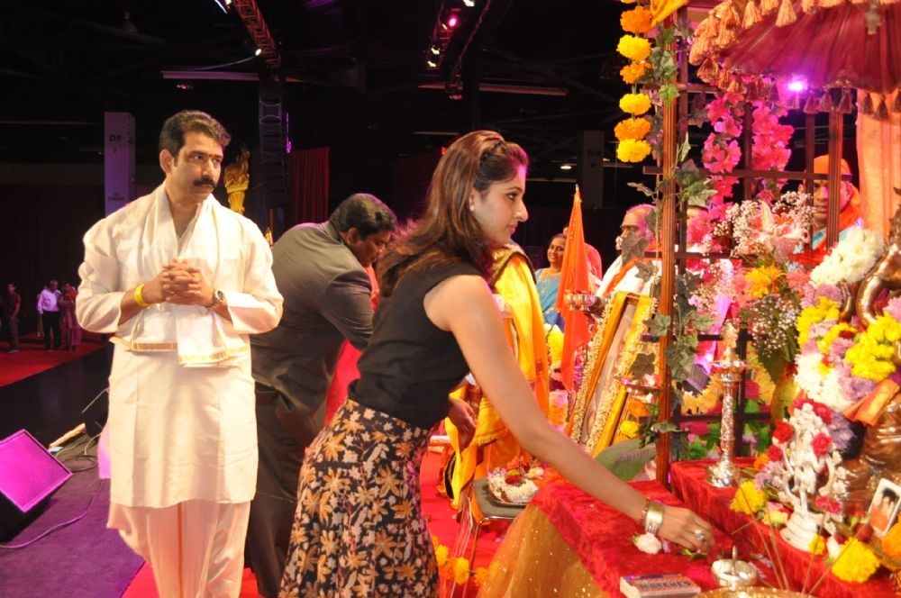NATS 4th Telugu Sambaralu on day two started with the devotional activities in Los Angeles. Actor and MLA Nandamuri Balakrishna, Justice Noothi Ramamohan Rao, Ambika Krishna, Errabelli Dayakararao, actors Ali, Sai Kumar, Kota Sankararao and others participated in Sai baba Palanquin seva.