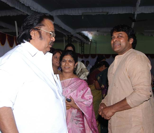 The 10th day ceremony of Chiranjeevi's father Venkata Rao was held at Cyber Gardens near Hitech City in Hyderabad on Thursday. Chiranjeevi's family paid floral tributes to their beloved man. Eminent people from film industry to politics attended the memorial and joined Chiranjeevi's family in paying tributes to the departed soul. The much talked about Central Minister Dasari Narayana Rao's presence aroused some curious moments among the visitors. Chiranjeevi personally accompanied Dasari to the portrait of his late father. Among other noted personalities who attended the ceremony were Akkineni Nageswara Rao, D.Rama Naidu, K. Raghavendra Rao, MS Reddy, Gaddar, Nagarjuna and key persons of Chiru, Pavan's fans associations. Later, Chiranjeevi's family thanked one and all for sharing their feelings by making a personal visit in the moments of their grief caused by the sudden demise of family doyen Venkata Rao.