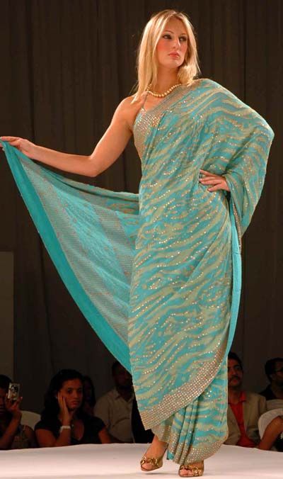 India s Famous Desinger Satya Paul with her Model on the Ramp at WTC Dubai UAE on 26th July 2007