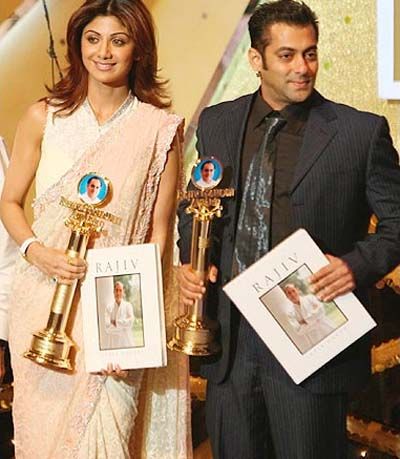 Bollywood star Salman Khan and Shilpa Shetty received 10th Rajiv Gandhi awards in Mumbai on Sunday.