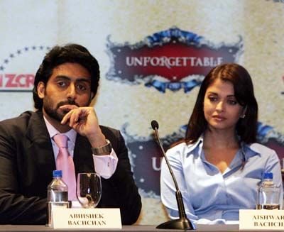 Abhishek Bacchan and Aishwarya at a press conference about their upcoming World tour The Unforgettable in NY on Aug 18th-07.