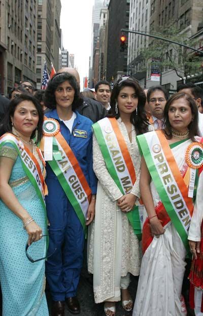 Priyanks Chopra is leading the parade held in comemoration of 60th anniversary of Independent India in New York with FIA President Shobhana patel,NASA Astronaut